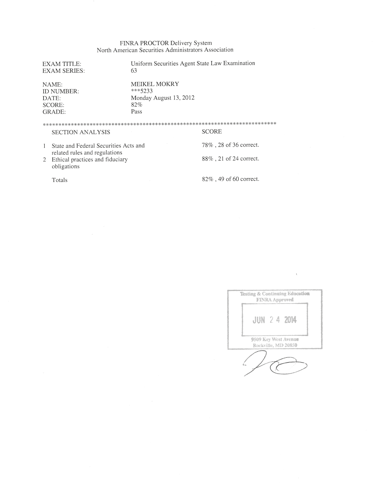 Trader Certification of FINRA, New York